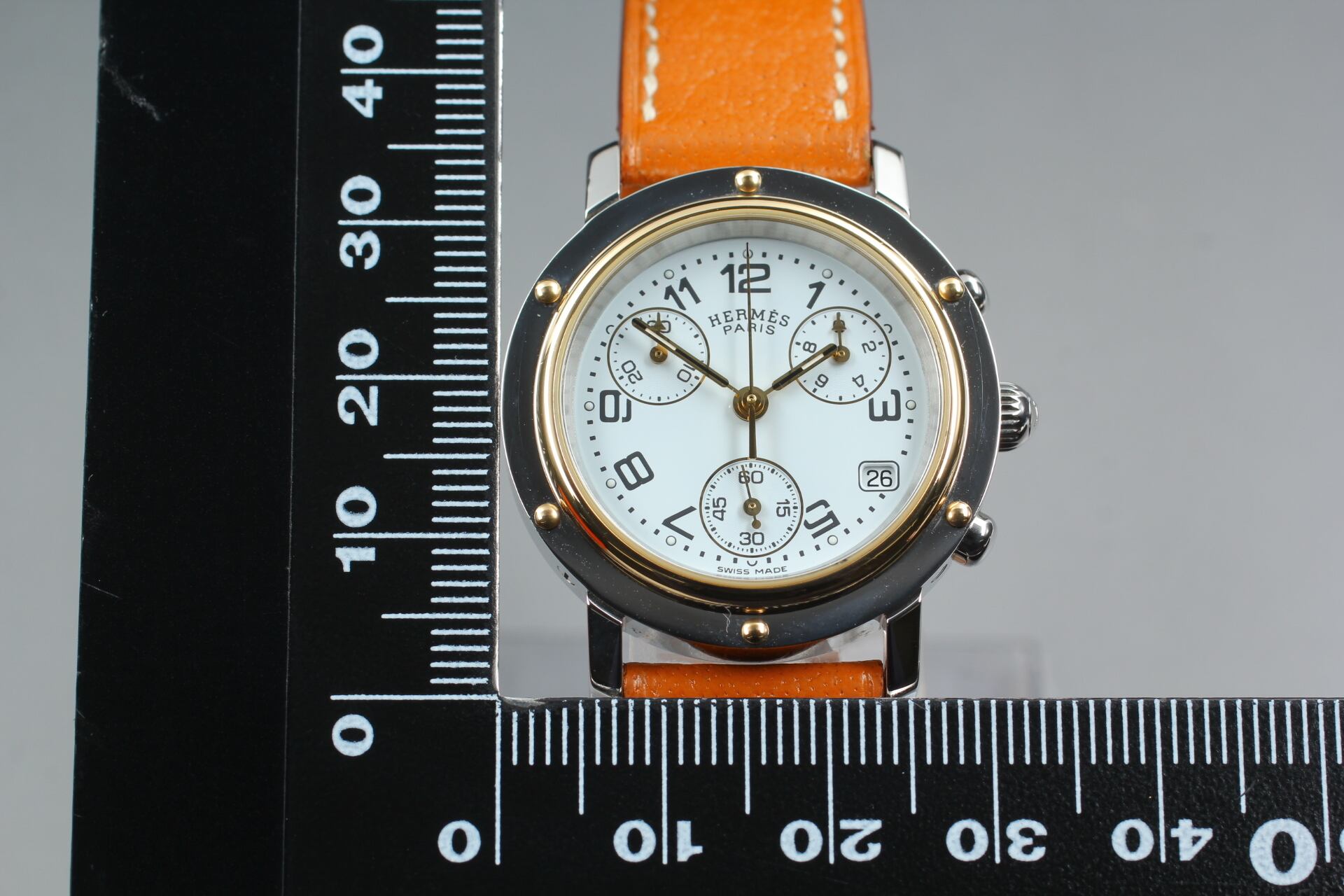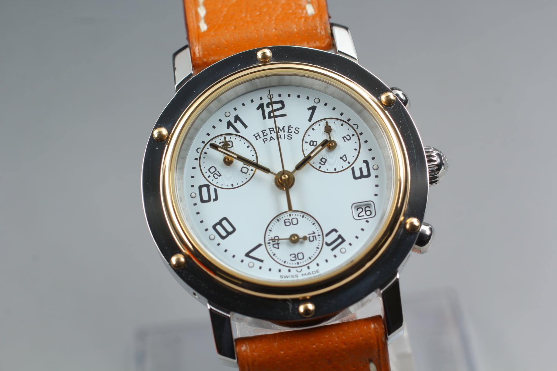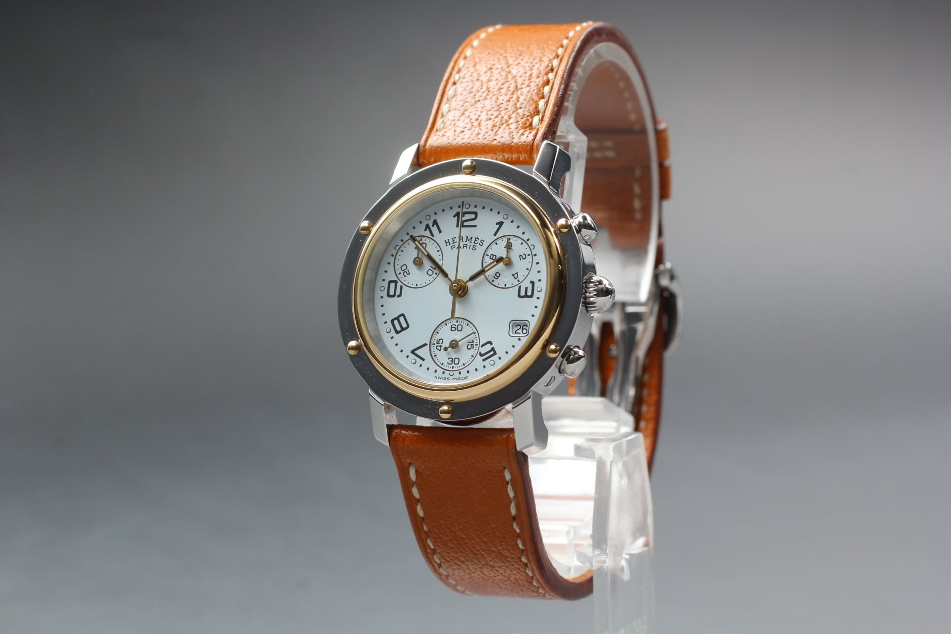 HERMES Clipper CL1.320 Chronograph Date Qz White Dial Womens Watch [Box Damaged]