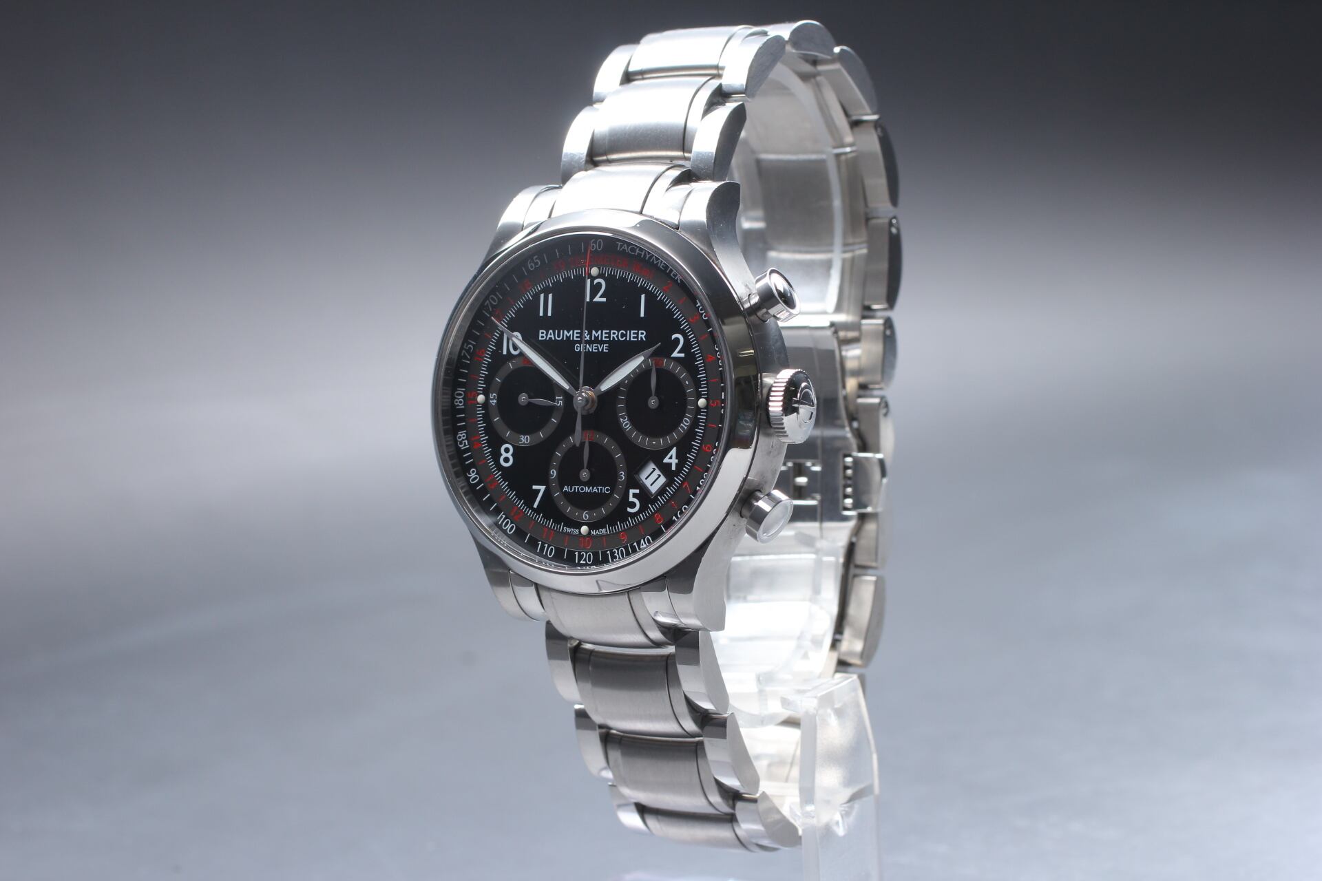 Baume & Mercier Capeland 65726 Chronograph AT Date Black SS Watch [ Box Damaged] #5506137