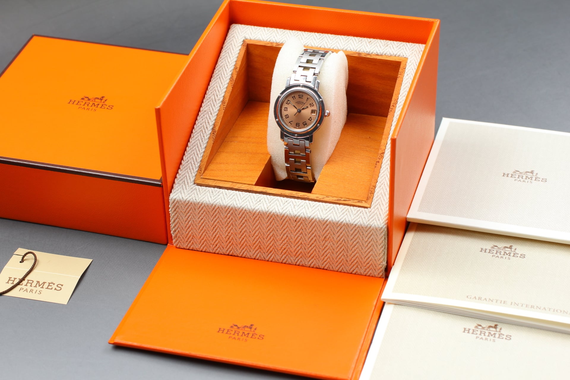 [ w/Box ] HERMES Clipper CL4.210 Pink Dial Quartz Swiss Made 24mm Women's Watch #5506030