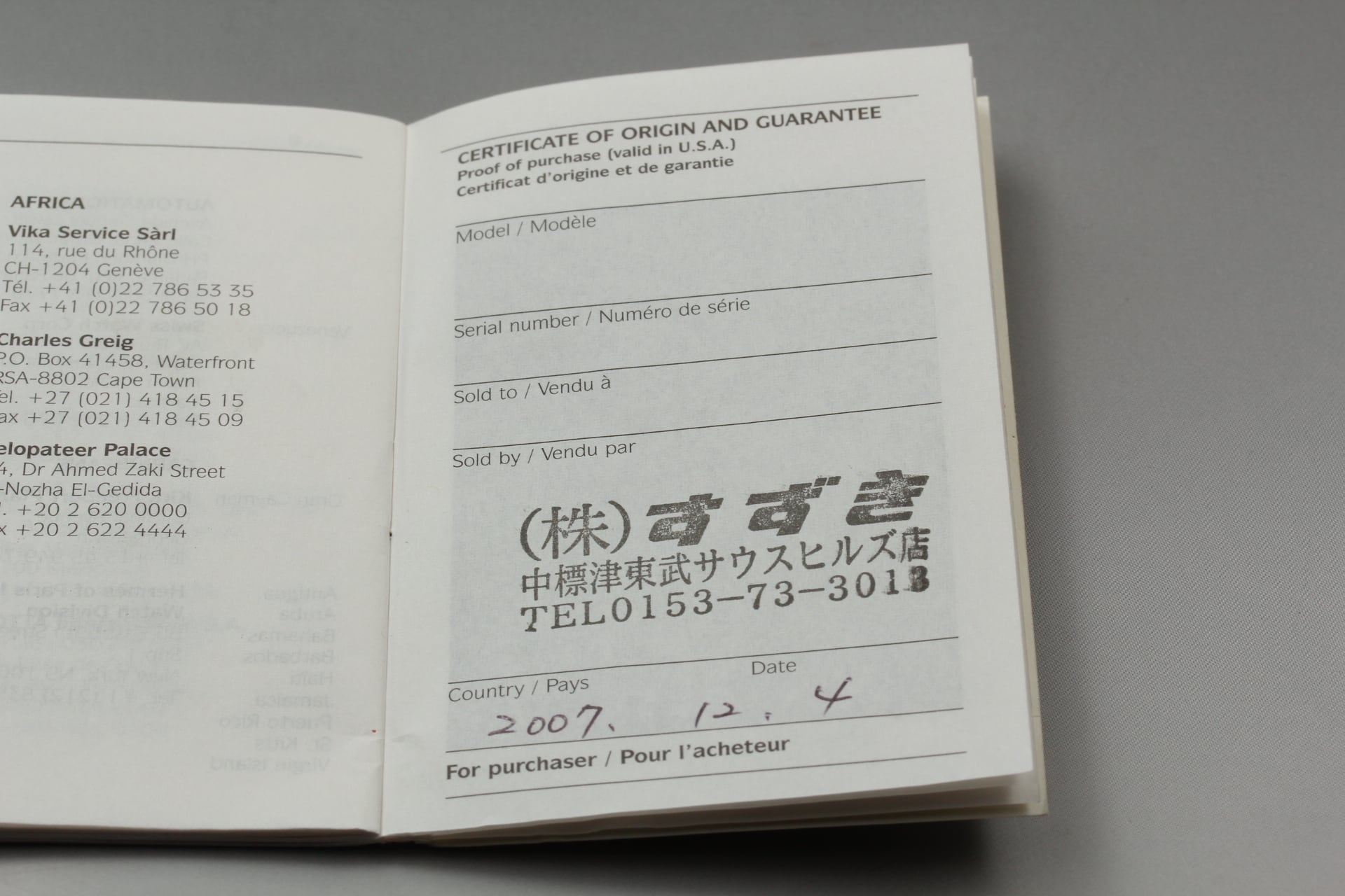 Payments will be paid in Japanese yen. The price in the foreign currency is a rough estimate.