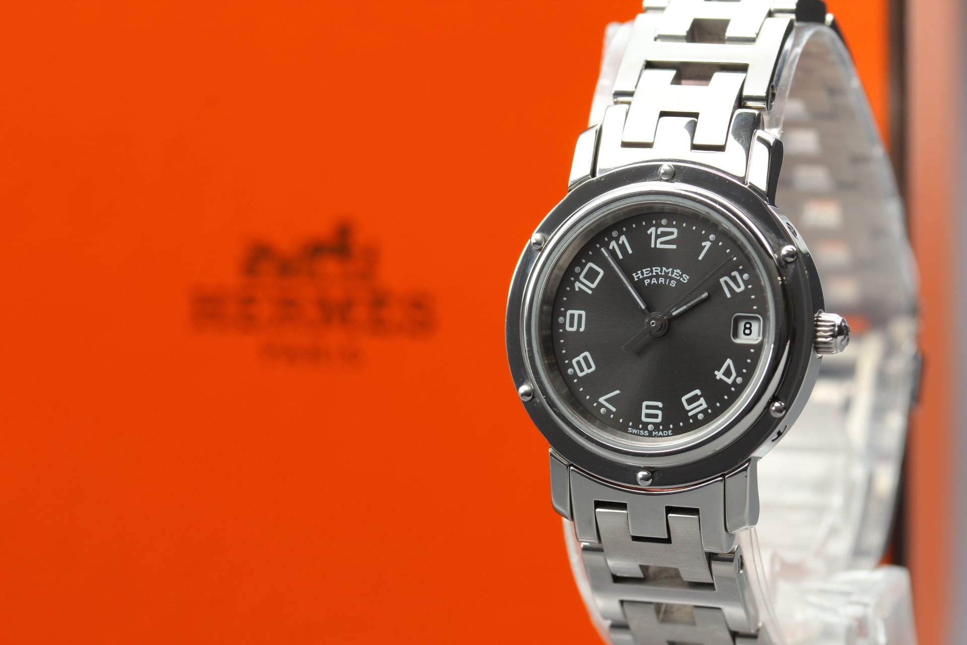 [Box, Paper] HERMES Clipper CL4.210 Gray(Sunray) Quartz Swiss Made Women's Watch
