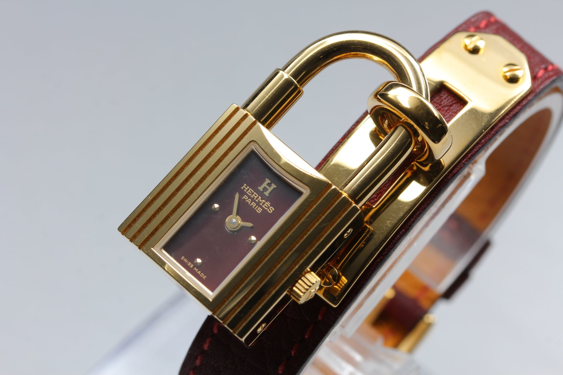 [ w/Box ] HERMES Kelly KE1.201 Brown Quartz Gold Plating Swiss Made Ladies Watch #5506790