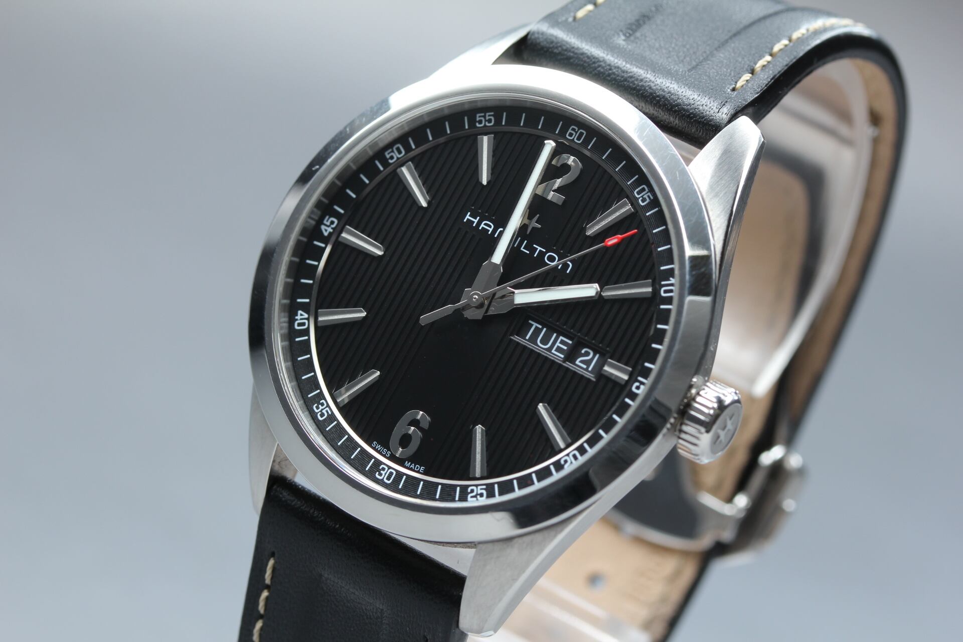 HAMILTON Broadway H433110 Black Quartz Day Date Sapphire Men's Watch [Band Wear] #5506624