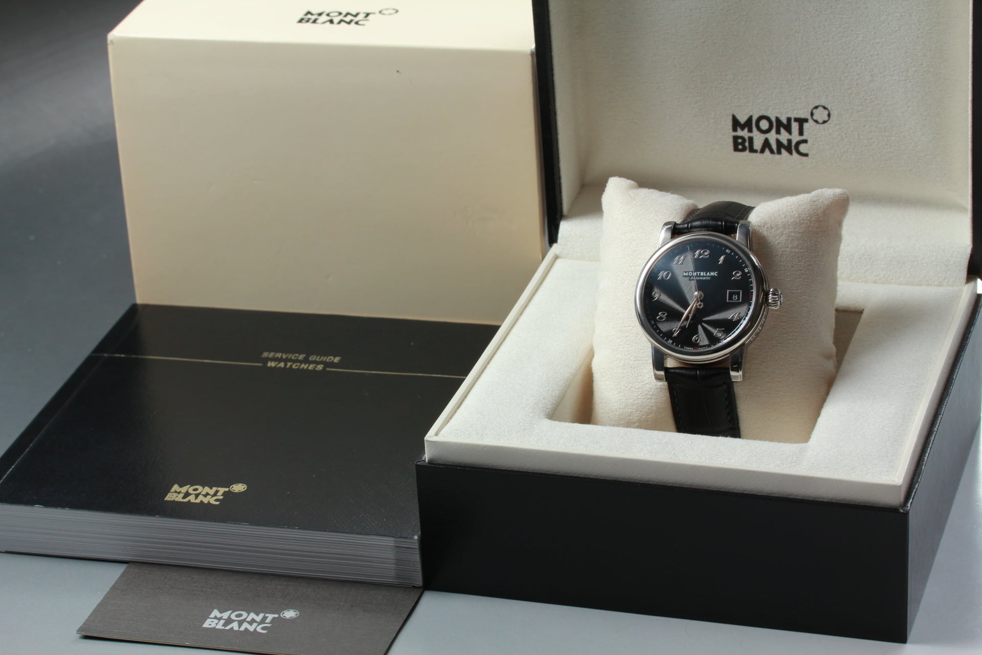 [w/Box, Paper] MONTBLANC Meisterstück Star Date 7236 Black Auto Swiss Made Watch